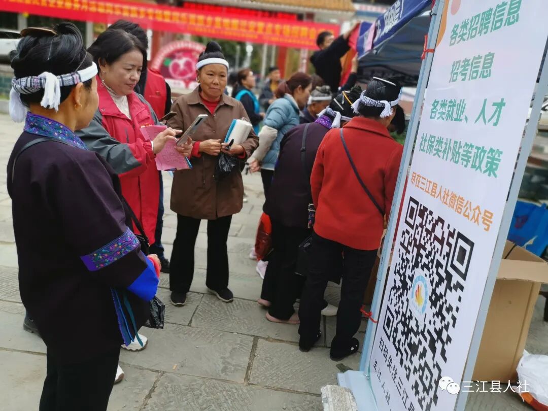 ? ?在招聘會現場,三江縣人力資源和社會保障局還采用線上線下相結合的模式,向求職群眾推廣“三江人社”微信公眾號,積極宣傳線上各類就業、社會保險等信息。同時,現場設置政策咨詢臺,工作人員用通俗易懂的侗語、苗語等少數民族語言為求職群眾提供政策咨詢,據統計,三場招聘會共向群眾提供就業、人才、社會保險等政策咨詢200余人次,發放就業、勞動保障等各種宣傳資料1600多份。
