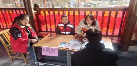 活動現(xiàn)場,在鎮(zhèn)長曹茜蕓的帶領(lǐng)下,包村組、駐村工作隊及志愿者們主動擔任“服務員”與“宣傳員”。面對老年群體,工作人員耐心指導其使用智能手機完成線上繳費,對沒有智能機的村民則協(xié)助線下辦理;針對政策理解不清的情況,隊員們手持喇叭走街串巷,用侗語循環(huán)播報繳費標準與截止時間,確保政策宣傳到位、入腦入心。