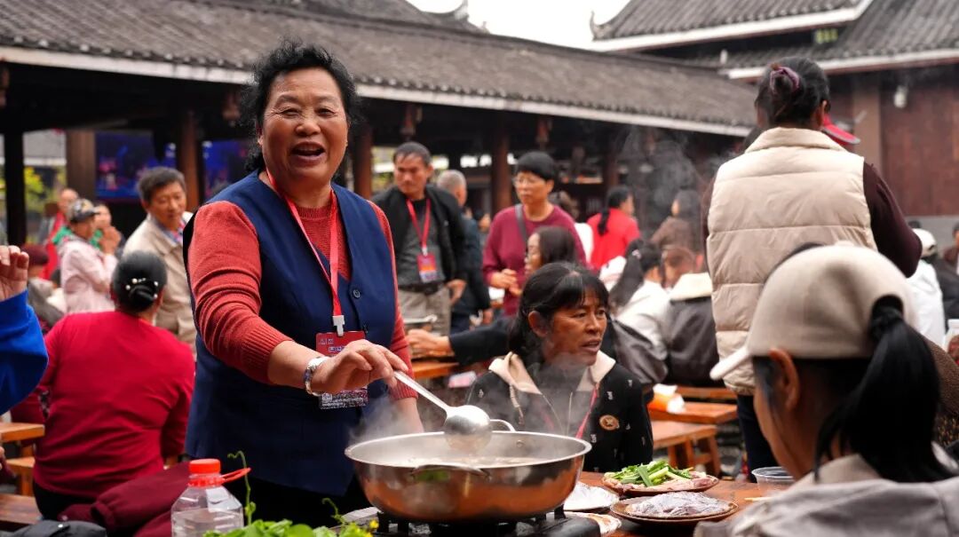 12月20日,三江侗族自治縣月也侗寨景區(qū)舉辦侗年刨湯宴,身著節(jié)日盛裝的侗族同胞以攔路迎賓、蘆笙踩堂、侗族大歌、吃侗年刨湯等形式,吸引各地游客沉浸式體驗侗年民俗,盡情感受侗鄉(xiāng)特色文化魅力。