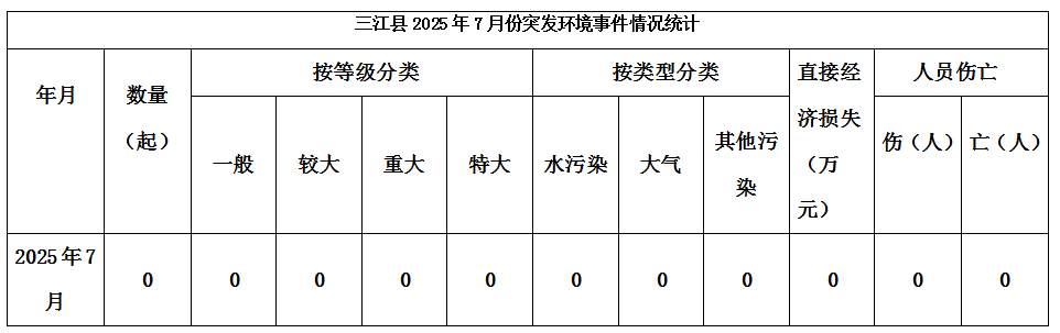 三江縣2025年7月份突發(fā)環(huán)境事件情況統(tǒng)計